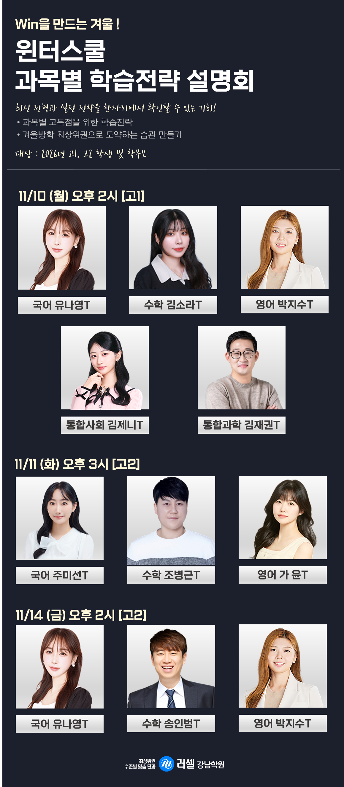 | [¼³¸íȸ] 2026 À©ÅͽºÄð °ú¸ñº° ÇнÀÀü·« ¼³¸íȸ [2026³â °í1/°í2] | |||
